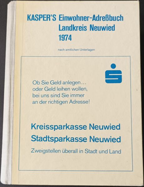 Kasper's Einwohner-Adreßbuch Landkreis Neuwied 1974, Vorderdeckel |