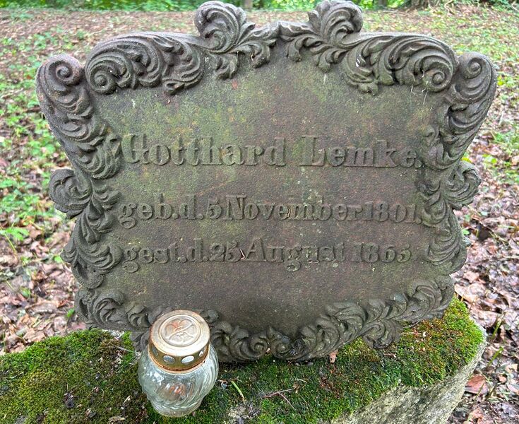 | aktuell | 12:54, 3. Aug. 2025 | 1.102 × 899 (448 KB) | GerMeyer (Diskussion • Beiträge) | {{Information |Beschreibung = Friedhof Absteinen Grabstein Gotthard Lemke |Quelle = selbst fotografiert |Urheber = Gert Meyer |Datum = Juli 2025 |Scans = |Genehmigung = Ja |Andere Versionen = |Anmerkungen = }} |