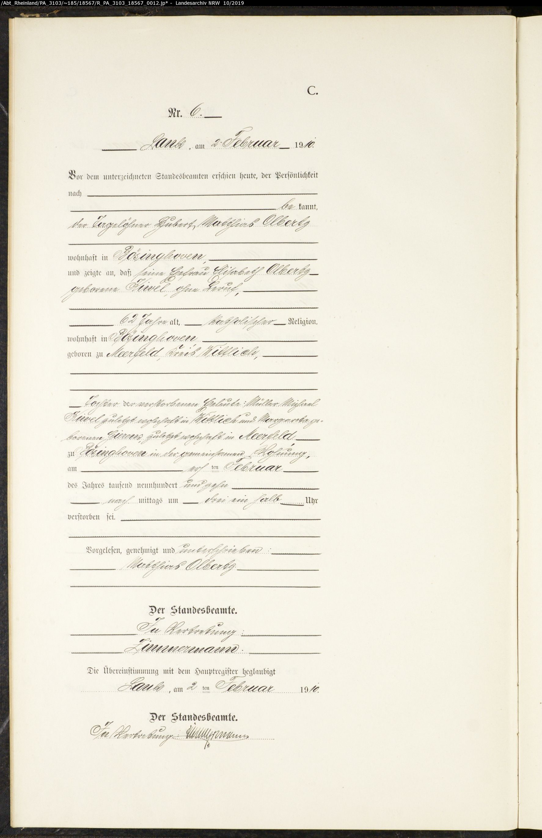 - Kiwel, Elisabeth, geb. in Meerfeld Kreis Wittlich, ca. 1848, verst. 01. Februar 1910 zu Bösinghoven (heute Meerbusch), Alter 62 Jahre, wohnhaft in Bösinghoven, katholischer Religion, Ehefrau von Taglöhner Hubert Matthias Olbertz wohnhaft in Bösinghoven, Eltern Müller Michael Kiwel zuletzt wohnhaft in Wittlich und Magareta geborene Gierens, zuletzt Wohnhaft in Meerfeld, Sterberegister 6/1910 Standesamt Lank