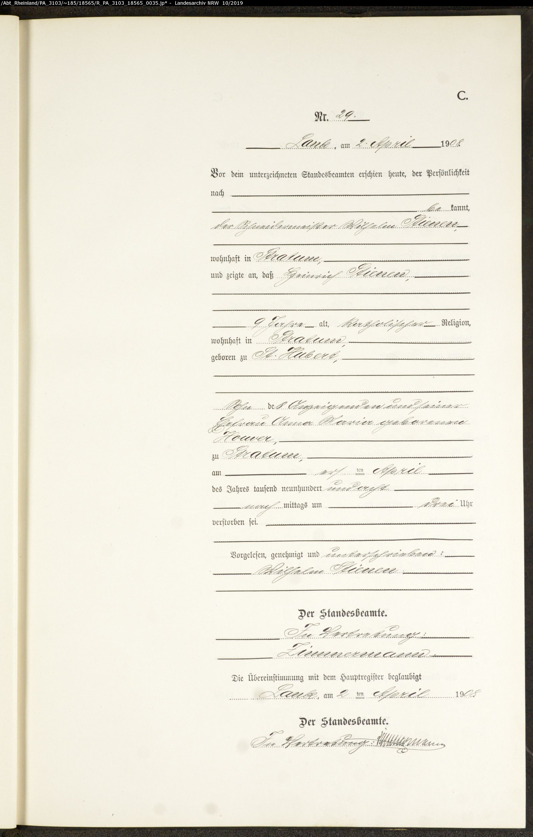 - Stienen, Heinrich, geb. in St. Hubert Kreis Kempen, ca. 1899, verst. 01. April 1908 zu Stratum (heute Krefeld, zu dieser Zeit Bürgermeisterei Lank (heute Meerbusch), Alter 9 Jahre, Eltern Schneidermeister Wilhelm Stienen, wohnhaft in Stratum, und Anna Maria geb. Houver Sterberegister 29/1908 Standesamt Lank